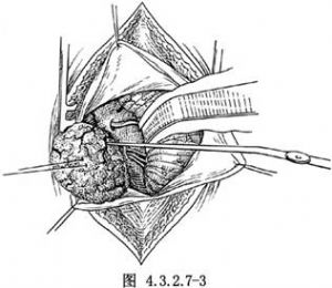 处理较大的肿瘤:在电凝切断供血动脉后,切开肿瘤包膜,做瘤内分块切除,使肿瘤体积缩小,再游离肿瘤进行全切。如肿瘤巨大,已经与脑干或重要颅神经紧密粘连,宁可留下那一小块肿瘤组织,而不能盲目地强求将肿瘤全切。残留的瘤组织用电凝烧灼处理。