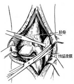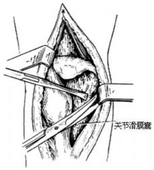 膝关节显露比较方便而宽敞,易达到彻底清除病灶的目的,手术治愈率可达95%以上。但膝关节周围缺乏肌肉,术后容易粘连而造成关节强直,即使单纯切除滑膜,术后关节功能也往往很差。