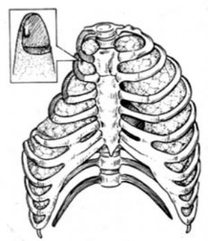 2-10 切除第1肋骨后,上胸壁塌陷