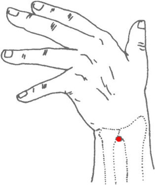 刺法:向上斜刺0.5~0.8寸,手腕酸麻,可向肩时放散。