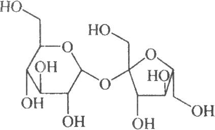 自然界分布最广的非还原性二糖,存在于许多植物中,以甘蔗和甜莱中含量最高,因此得名。纯净的蔗糖是无色晶体易溶于水,比葡萄糖、麦芽糖甜,但不如果糖甜。蔗糖是由一分子葡萄糖和一分子果糖缩合失去一分子水而成,葡萄糖分子中的醛基和果糖分子中的酮基都被破环,因此没有还原性,属非还原性二糖。蔗糖在酸或蔗糖酶的作用下,水解生成等量的葡萄糖和果糖。因此其水解产物没有还原性。