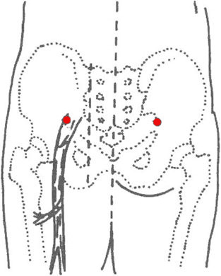 1.直刺1.5~3寸,局部酸胀,有麻电感向下肢放散,用以治疗下肢痿痹,坐骨神经痛等;