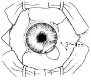 3.角巩膜切口太靠后,位于睫状体上方时,应当关闭切口,在其他象限再行手术。