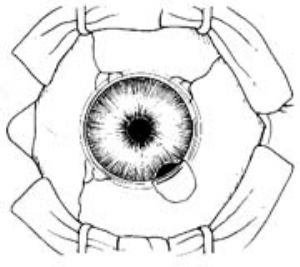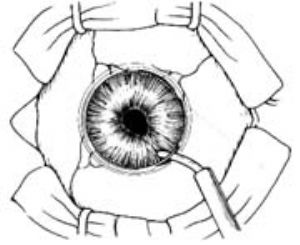 8.角巩膜切口 一般不需缝合。如果切口较大,可用10-0尼龙线缝合一针。