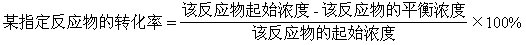 可逆反应达到平衡状态时,指定反应物消耗掉的量跟反应开始时投入的量的比,用百分数表示,叫做该原料反应物的转化率。或写成?xml:namespace prefix = o ns = "urn:schemas-microsoft-com:office:office" /