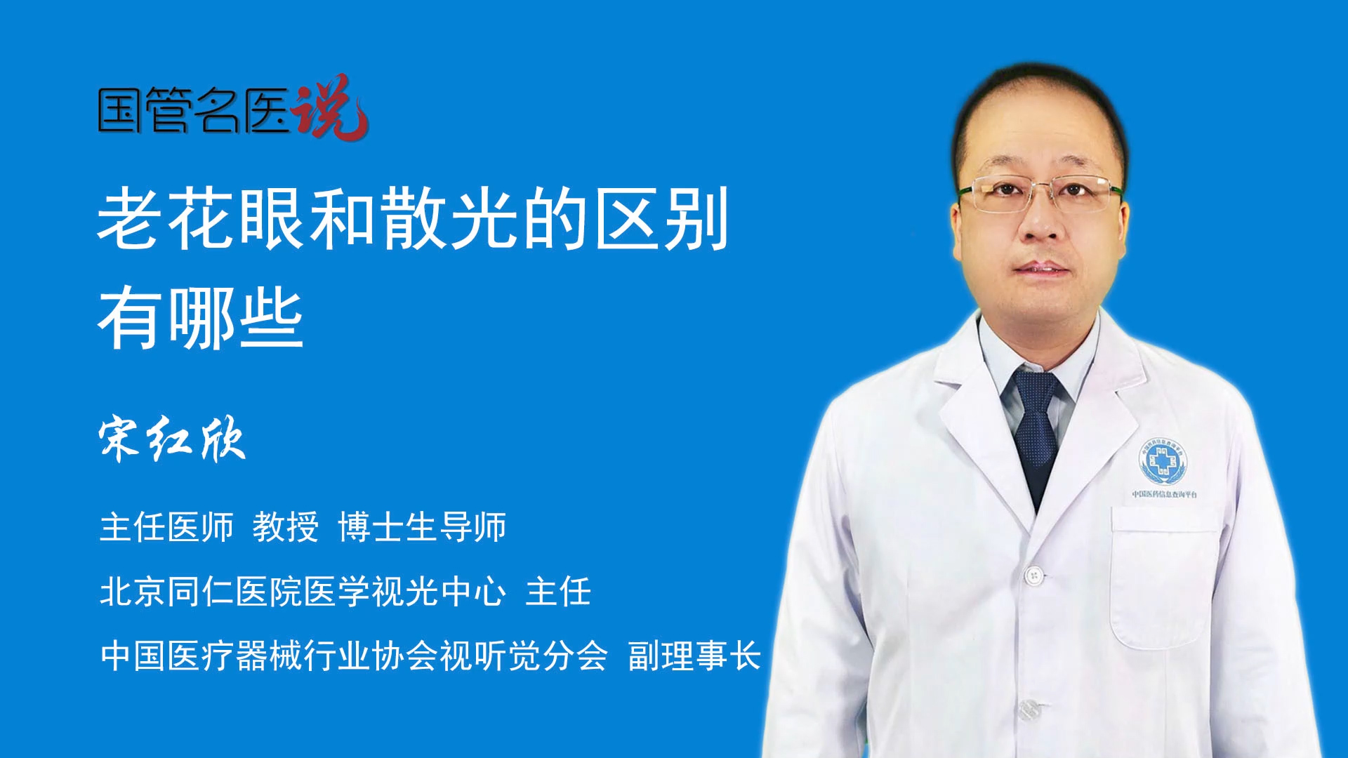 散光和老花眼在病因、表现、治疗等方面都有区别。散光是因为眼睛屈光系统不规则导致的,正常的角膜像是一个半球形,它能够比较完美的成像在视网膜上,但如果角膜不规则,长成橄榄球的样子,就会出现散光;而老花眼是由于年龄增加,晶体功能及相应调节功能变差所致。散光表现为两个方向的光线成像在视网膜前方或后方,造成了光线模糊;而老花眼表现为看近物模糊。在治疗方面,散光需佩戴散光镜,而老花眼则需要佩戴老花镜。