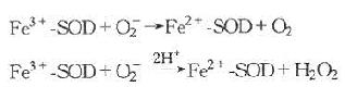 Fe-SOD参与反应的机制与Cu、Zn-SOD一样按两步进行:
