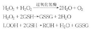 体内H2O2可被氧化酶和氧化物酶转变为H2O2消除H2O2的毒性。过氧化氢酶可催化两两分子H2O2生成H2O2和O2过氧化物酶利用H2O2直接胺类等物质,某些组织中含有一种含硒的谷胱氧化酶,可使LOOH或H2O2与GSH反应将LOOH变成无毒的醇类。