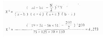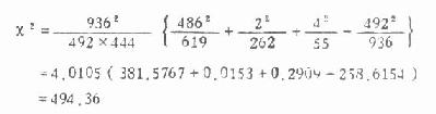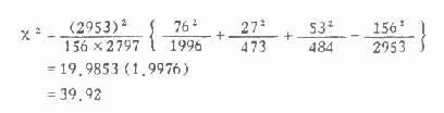 2.求χ2值, 将表3.13中的数值代入式3.10得: