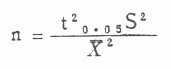 (二)个别比较t检验样本含量的计算 令n为所需样本数,S为差数的标准差,X为差数的均数,t0.05O为t值表上相当于P=0.05的t值,4为n足够大时t20.05=1.962的数,则