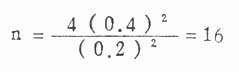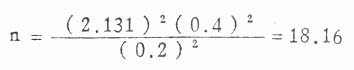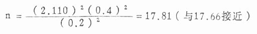 仍用例11.6来说明,本例X=0.2,S=0.40,故δ=μ/σ=0.2/0.4=0.5。若设α=0.05,1—β=0.90,用双侧检验,查附表得20,得n=44,即需观察44例病人。若设α=0.05,1—β=0.50,则n=18,同计算法结果一致。