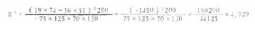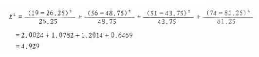 4.求χ2值 将表3.6里的数值代入式(3.5)得,