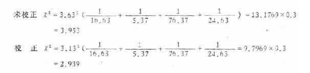 现用公式(3.5)及式(3.6)分别计算χ2值如下: