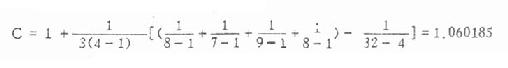 上式中2.3026是由自然对数换成常用对数计算时用的转换系数,若直接用自然对数ln,不用1g,就不必乘此数,C也是一个系数,用以校正χ2值,求C的公式是,