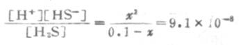 设第一步离解平衡时[H+]=x,则[H+]≈[HS-],平衡时则有下列关系: