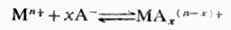 金属离子Mn+和配位体A-生成配离子MA(n-x)+x,在水溶液中存在如下平衡:
