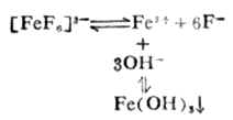 因此,在碱性介质中,由于Fe3+水解成难溶的Fe(OH)3沉淀而使平衡向右移动,因而[FeF6]3-遭到破坏,这种现象称为金属离子的水解效应。