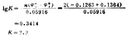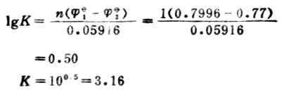 氧化还原K与反应中两个电对的标准电极电位的关系为:
