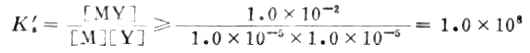 可见MY配合物的 Ks'必须等于或大于1.0×108,才能满足滴定误差小于0.1%的要求