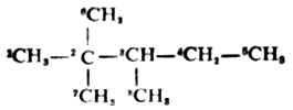 只与另外一个碳原子直接相连的碳原子,如上式中的C-1,5,6,7,8叫做伯碳原子;若碳原子与另外两个碳直接相连如-4,叫做仲碳原子;与另外三个碳原子直接相连的碳如C-3叫做叔碳原子;与另外四个碳原子直接相连的碳如C-2叫做季碳原子。