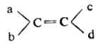 按次序规则决定双键上每个碳所连的两个原子或原子团的优先次序后,在下式中,如a>b,c>d,则当a与c在参考平面(π键所在平面,即与![]()