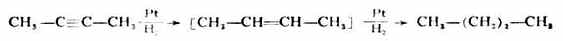 在催化剂(Pt,Pd或Ni)的作用下,炔烃与氢加成可生成烯烃,最后生成烷烃。
