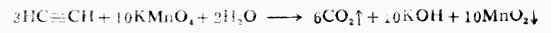 炔烃氧化时,碳链在三键处断裂。例如,乙炔用高锰酸钾氧化时,生成二氧化碳。