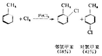 在同样的催化剂存在时,苯的同系物与卤素的反应比苯容易。一烷基苯与卤素反应主要是卤素取代烷基的邻位或对位上的氢原子。