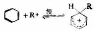 苯及其同系物在苯环上的取代反应,包括卤化、硝化、磺化、烷基化及酰化等,是一个带正电荷的原子或原子团(E+)首先进攻苯环而进行的反应,故是一个亲电取代。它的整个过程用下式表示。