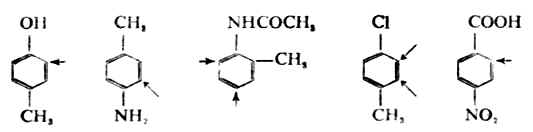 当苯环上已带有这类定位取代基时,再引入的其它基团主要进入它的邻位或对位,而且第二个取代基的进入一般比没有这个取代基(即苯)时容易,或者说这取代基使苯环活化。下面是常见的邻、对位定位取代基。它们的定位取代效应按下列次序而渐减。