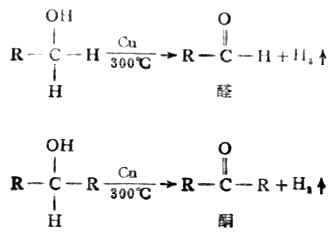 用催化脱氢的方法也可将醇氧化。在Cu 、Ag等金属催化下,醇经高温可失去两个氢原子而生成相应的醛和酮,此法可用于工业生产。