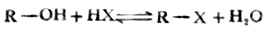 上述反应是可逆的,如其中一种反应物过量或移去产物水,可使平衡右移,提高卤代烃的收率。这个反应的速率与氢卤酸和醇的类型有关。当同一种醇与不同的氢卤酸作用时,反应速率是:HI>HBr>HCL。同一种氢卤酸与不同的醇作用时,反应速率是:叔醇>仲醇>伯醇。如用无水氯化锌作催化剂,浓盐酸可与叔醇立即反应,生成的卤代烃因不溶于反应试剂而呈混浊;如与仲醇反应,需几分钟才呈混浊;如与伯醇反应,则几小时也不见混浊。因此利用上述不同的反应速率,可作为区别伯、仲、叔醇的一种化学方法。这种由浓盐酸和无水氯化锌所配成的试剂又称为卢卡斯试剂。