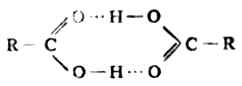 羧酸的沸点比相对分子质量相近的醇还要高。例如,甲酸和乙醇的相对分子质量相同,但乙醇的沸点为78.5℃,而甲酸为100.5℃。这是因为羧酸分子间能以氢键缔合成二聚体,羧酸分子间的这种氢键比醇分子间的更稳定。例如,乙醇分子间的氢键键能为25.94kJ·mol-1,而甲酸分子间的氢键键能则是30.12kJ·mol-1。低级羧酸即使在气态也是以二缔合体的形式存在。