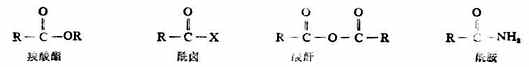 羧酸中的羟基可以被其它原子或原子团取代,生成羧酸衍生物。例如: