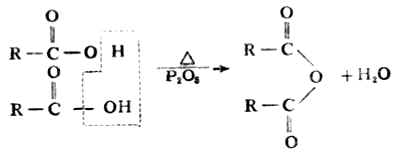 除甲酸外,一元羧酸与脱水剂共热时,两分子羧酸可脱去一分子水,生成酸酐。