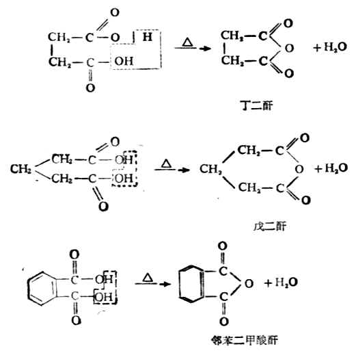 这三种酸与脱水剂共热时失水,生成环状酸酐。