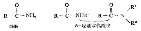酰胺是羧酸的衍生物。在构造上,酰胺可看作是羧酸分子中羧基中的羟基被氨基或烃氨基(-NHR或-NR2)取代而成的化合物;也可看作是氨或胺分子中氮原子上的氢被酰基(