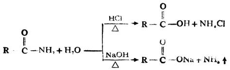 酰胺在通常情况下较难水解。在酸或碱的存在下加热时,则可加速反应,但比羧酸酯的水解慢得多。