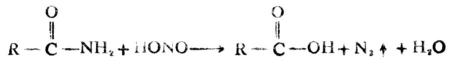 酰胺与亚硝酸作用生成相应的羧酸,并放出氮气。