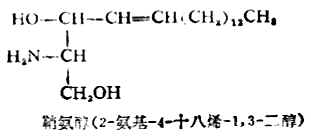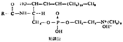 脑和神经组织中含有大量的鞘磷脂,脾、肝及其它组织中含量较少。鞘磷脂的组成和结构与磷脂酰胆碱、磷脂酰乙醇胺不同,其分子中不含甘油部分,而是含有一个长链的不饱醇——鞘氨醇。1mol鞘磷脂完全水解后,可得到鞘氨醇、脂肪酸、磷酸和胆碱各1mol。