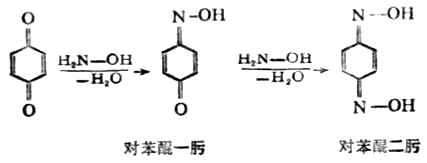 苯醌同醛、酮一样,可与羰基试剂发生加成反应。如以苯醌与羟胺反应,先生成对苯醌一肟,再生成对苯醌二肟。
