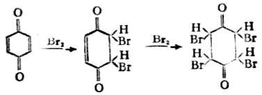 对苯醌和溴发生加成反应,可生成二溴化物或四溴 化物。