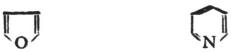 与苯比较,环的芳香稳定性不如苯环,电子云密度分布也不完全平均化。由于杂原子电负性大小不同(O>N>S),电子云离域有差异,所以它们的芳香性强弱有差异,环的稳定性也不同。