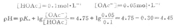 解:把所给条件代入式(3-11),由书后附表查得HOAc的pKa=4.75,则得: