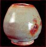 钧瓷拔火罐高10.4cm,口径5.5cm,底径6cm,腹围30.5cm。灰釉。罐口沿有烧痕。