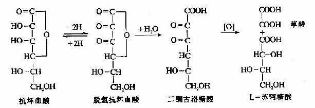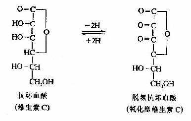 维生素C又名抗坏血酸(ascorbic acid),它是含有内脂结构的多元醇类,其特点是具有可解离出H+的烯醇式羟基,因而其水溶液有较强的酸性。维生素C可脱氢而被氧化,有很强的还原性,氧化型维生素C(脱氢抗坏血酸dehydroascorbic acid)还可接受氢而被还原。