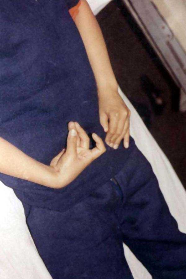 手指变形的形象为:皮色不变,屈伸不便且痛。病例:弗利德莱氏共济失调(Friedreich),也常见于脊髓灰质炎、踝关节损伤、佝偻病等。