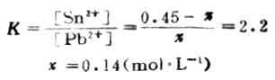 例13 向0.45mol.L-1铅盐溶液中加锡,发生下列反应,