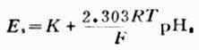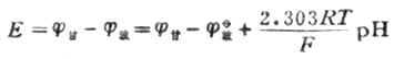 式中PHs 为已知数、Ex和 Es为先后两次测出的电动势,F,R,T为常数,故可根据式(6-9)计算出待测溶液的PH值。