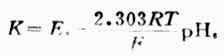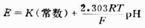 上式为溶液PH值与电池电动势的关系式。测出E值值后,若是不知道常数K的数值,还是不能算出PH值。因此要先用已知PH值为PHs的标准缓冲溶液进行测测定,测出电动势为Es,则可得关系式为: